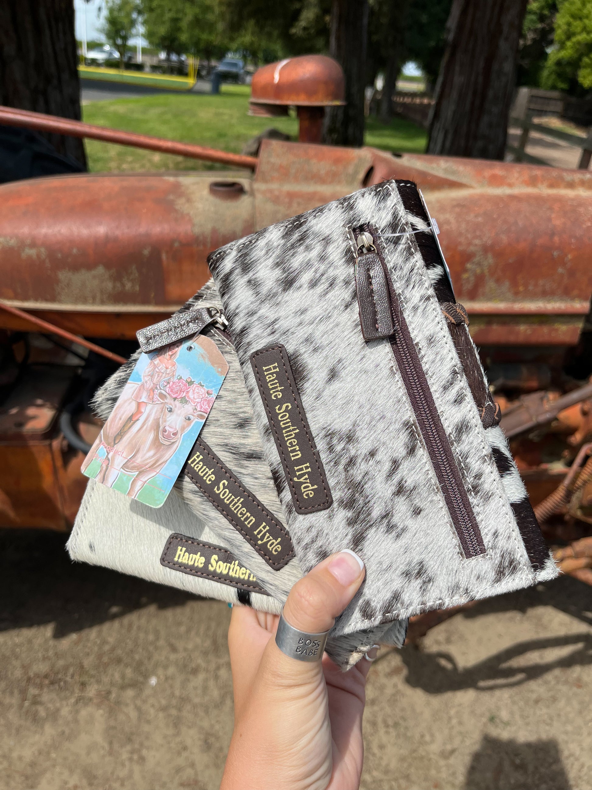 Sometimes a Hyde is just the vibe, and hand woven leather exemplifies the simplistic nature of this design. Introducing the Brown Ryder, a Haute Southern Hyde by Beth Marie Exclusive. Designed by the owner Beth Marie, this wallet was made for the everyday western fashion gal. She features a snap closure, a zipper for your loose change, and 6 slots for your cards. 1 of those being clear to hold your I.D. Card.
