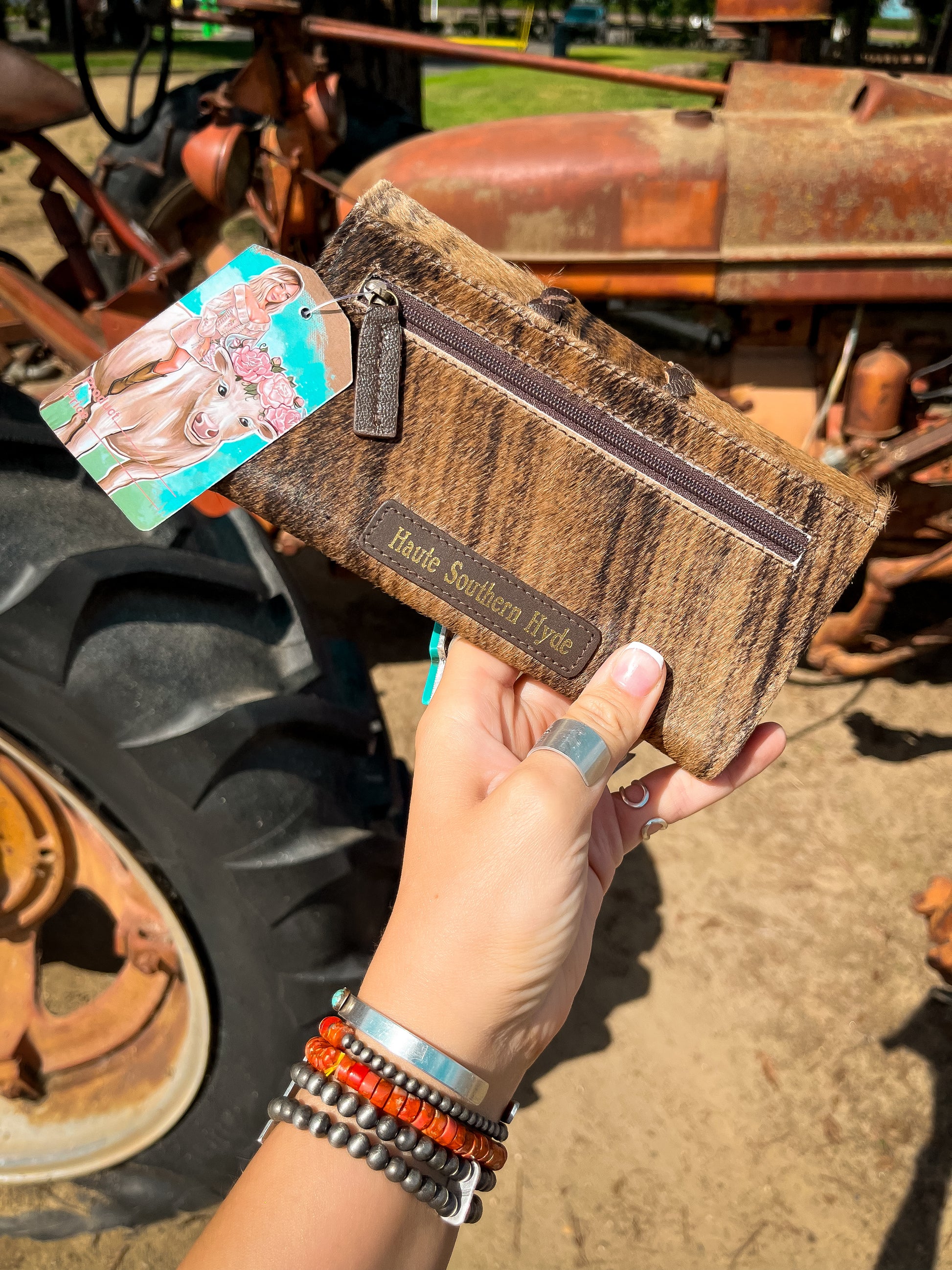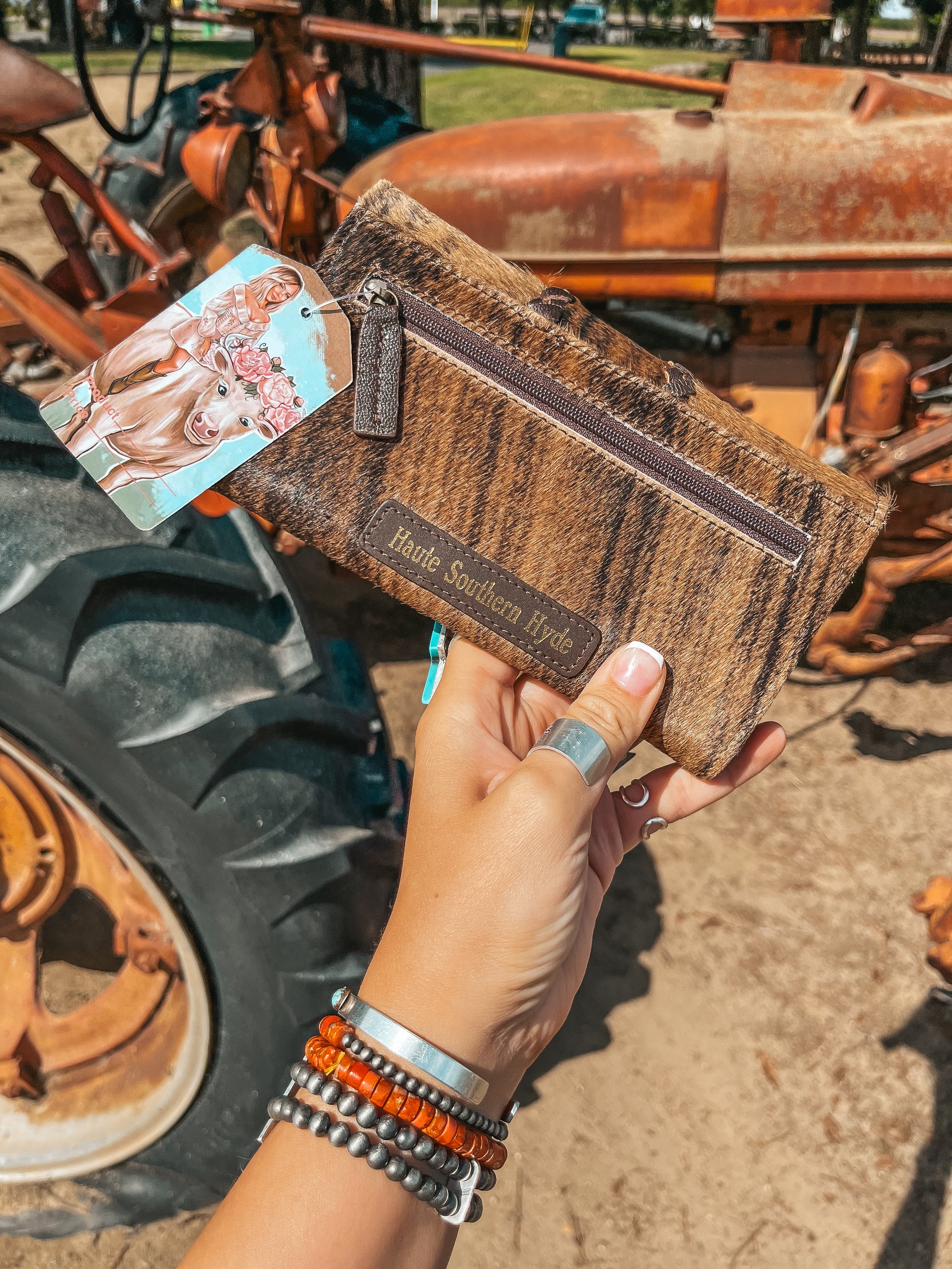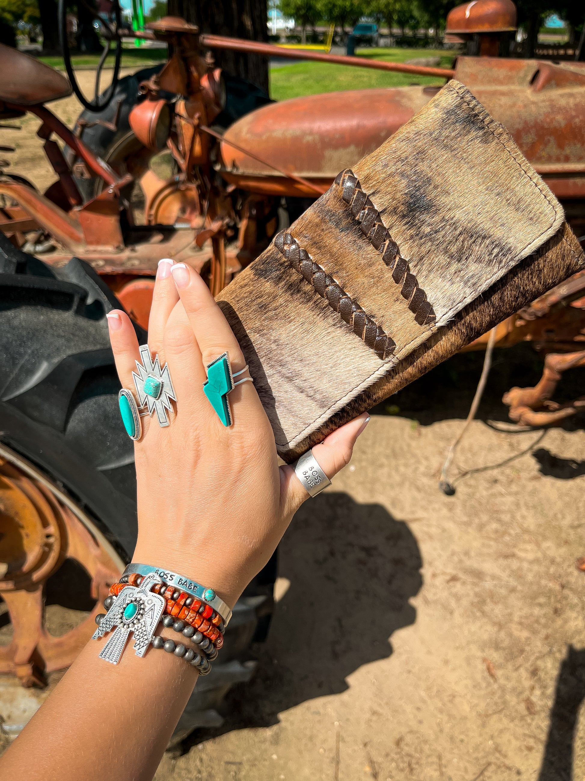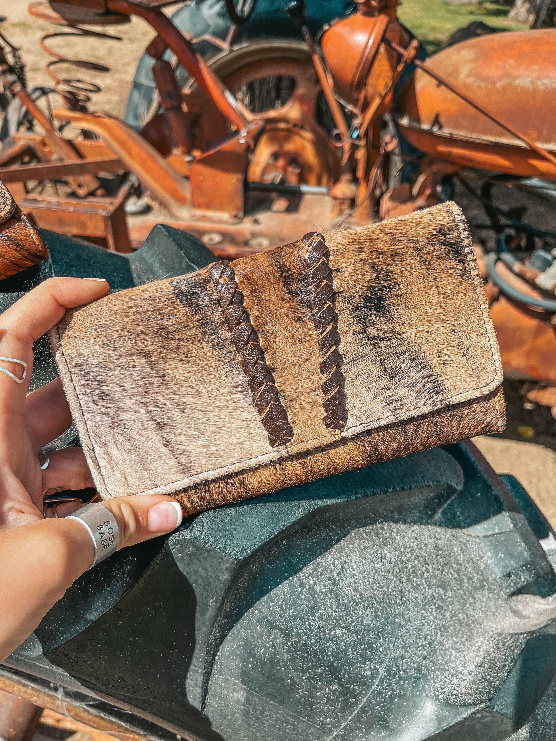 Sometimes a Hyde is just the vibe, and hand woven leather exemplifies the simplistic nature of this design. Introducing the Hazy Ryder, a Haute Southern Hyde by Beth Marie Exclusive. Designed by the owner Beth Marie, this wallet was made for the everyday western fashion gal. She features a snap closure, a zipper for your loose change, and 6 slots for your cards. 1 of those being clear to hold your I.D. Card.