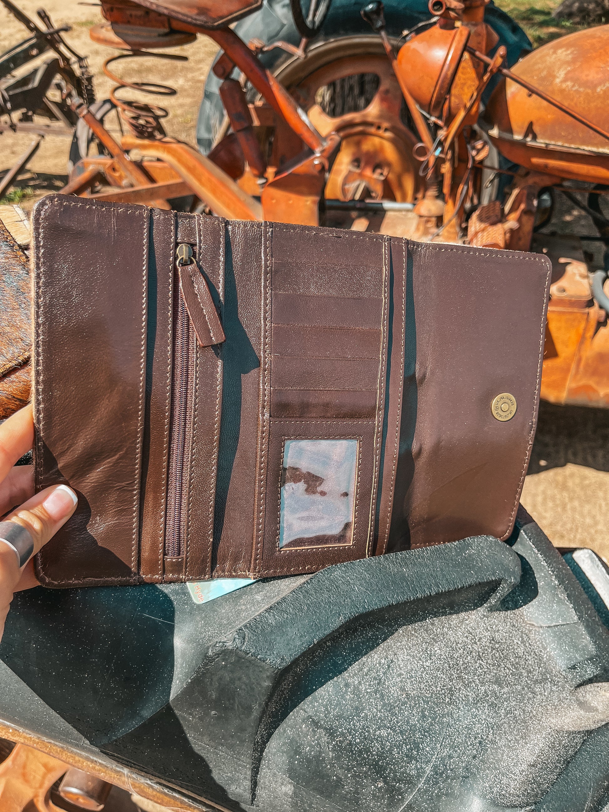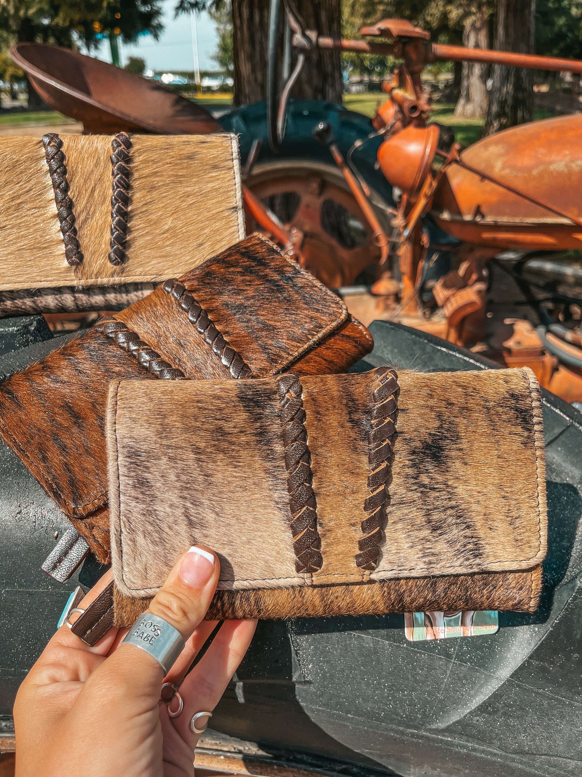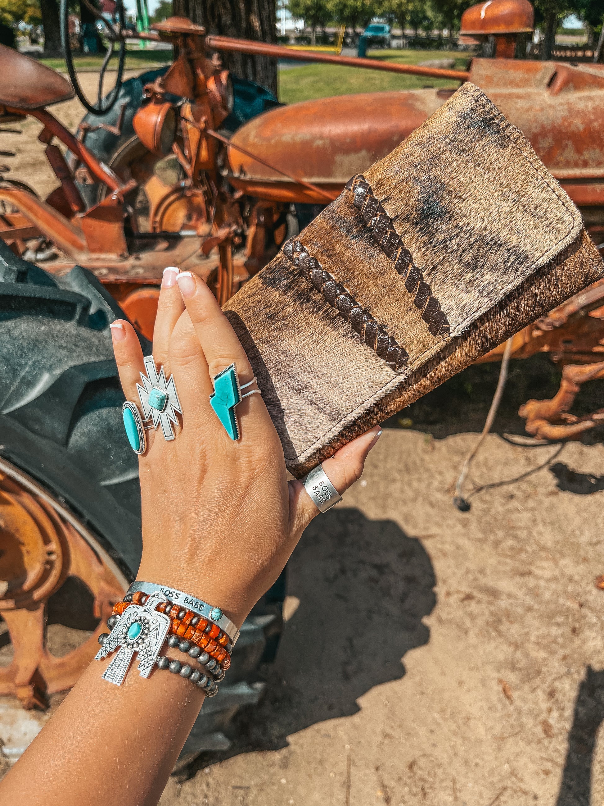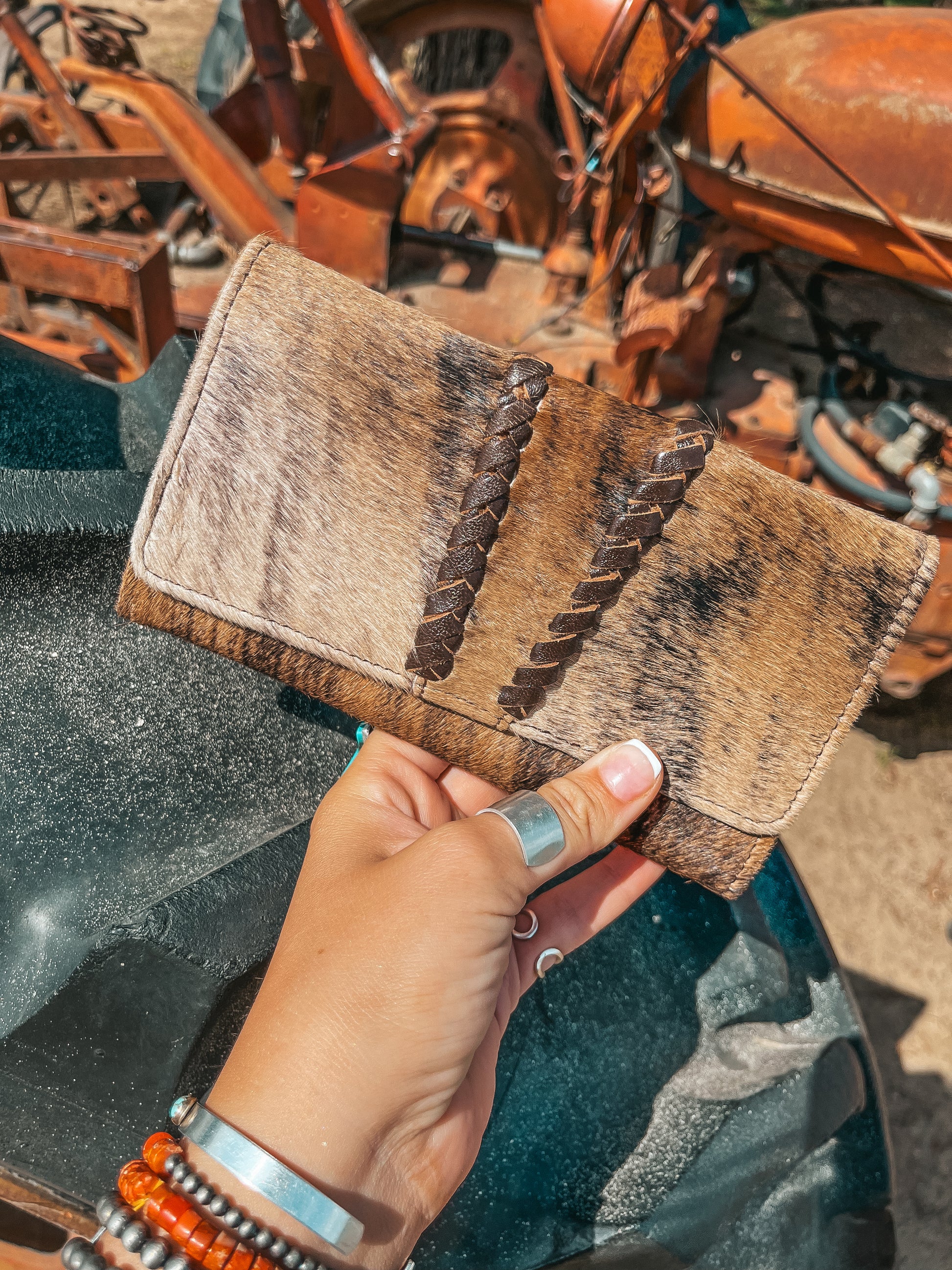 Sometimes a Hyde is just the vibe, and hand woven leather exemplifies the simplistic nature of this design. Introducing the Hazy Ryder, a Haute Southern Hyde by Beth Marie Exclusive. Designed by the owner Beth Marie, this wallet was made for the everyday western fashion gal. She features a snap closure, a zipper for your loose change, and 6 slots for your cards. 1 of those being clear to hold your I.D. Card.